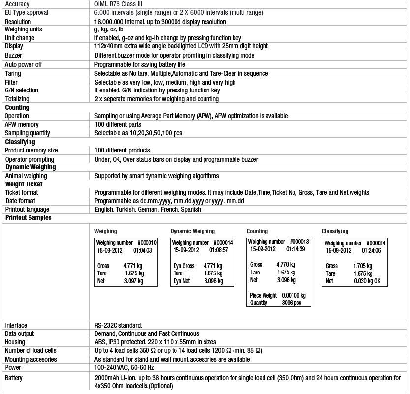 El instrumento está aprobado por las autoridades de pesos y medidas para su uso en aplicaciones de clase de precisión III con intervalos según OIML R76.