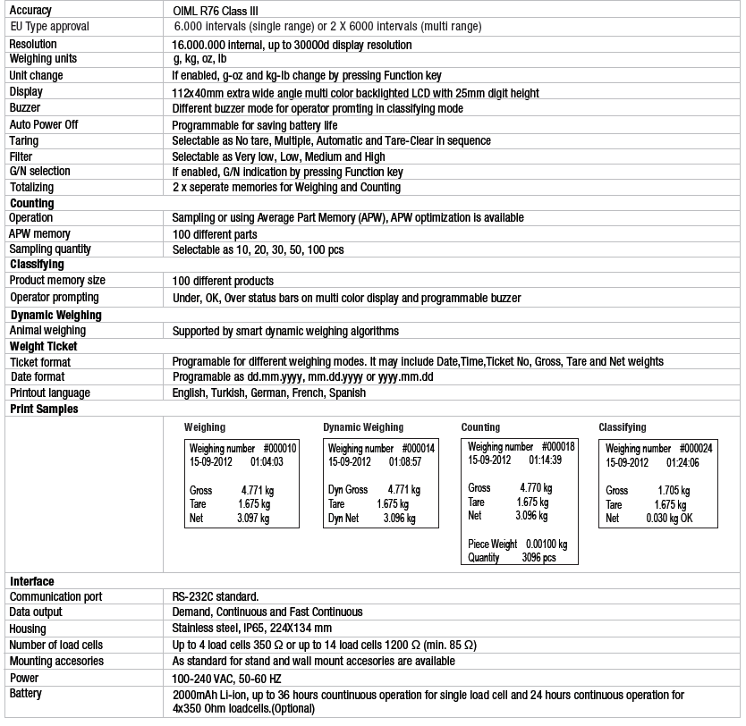 El instrumento está aprobado por las autoridades de pesos y medidas para su uso en aplicaciones de clase de precisión III con intervalos de acuerdo con OIML R76.